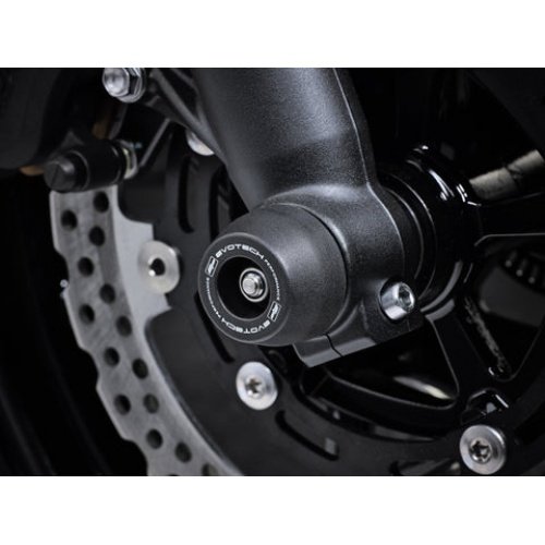 The Evotech Performance Front Axle Sliders help protect your forks, brake calipers and axle in the event of a crash. Nylon sliders stick out from an aluminum inner to take the initial impact. Each slider is able to rotate freely to help reduce wear and damage in a slide.