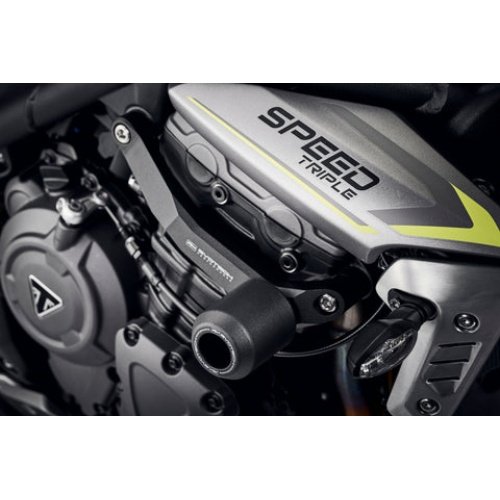 The Evotech Performance Frame Sliders install onto factory mounting points so you don’t have to worry about making any modifications to your stock motorcycle. CNC machined aluminum hardware holds high performance polymer that is meant to take the brunt of damage whether it is a parking lot tip over or low side.