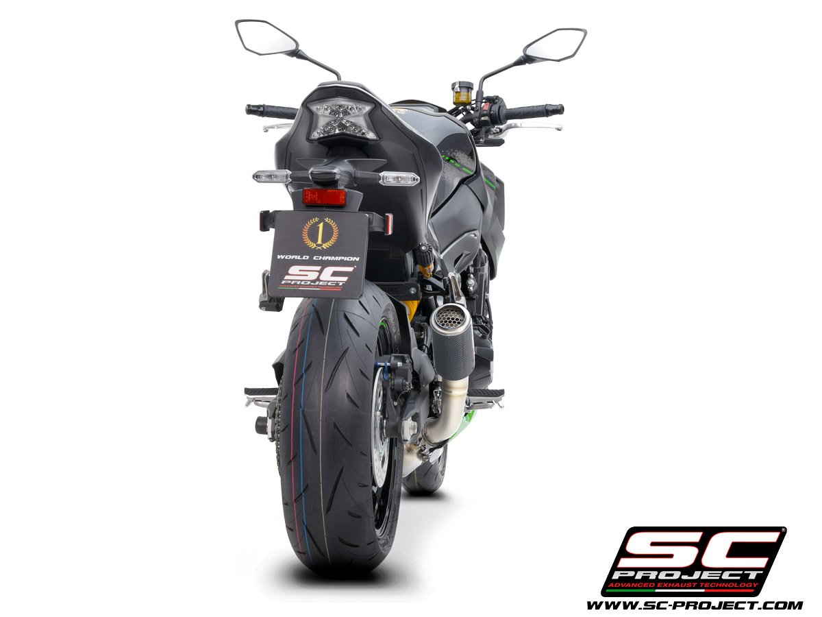 The CR-T muffler, the multiple MotoGP and Moto2 World Champion, makes the Kawasaki Z900 more aggressive than ever. Its racing look, aeronautical-derived materials such as titanium and carbon fibre, Bracket and fitting welds with T.I.G. technology and insert bushings machined from solid by CNC machines, make it the best on the market for your Kawasaki. The titanium flame breaker mesh, born from the racing experience, makes the silencer of your Z900 even more precious. The sound is as extreme as possible. The silencer is EURO5 approved. Available with an external body in both carbon and titanium and with a large carbon protection made in autoclave, which completely takes the place of the original.
