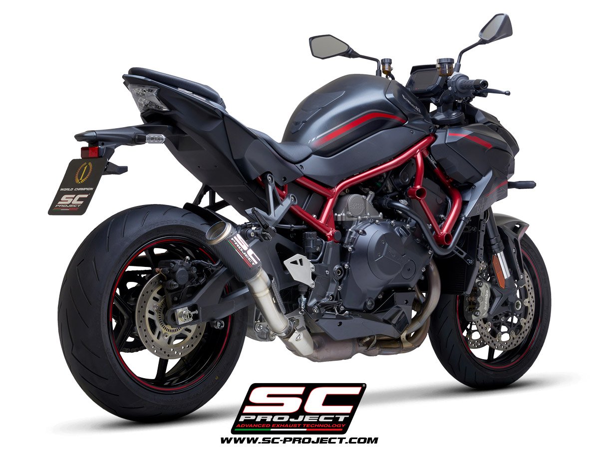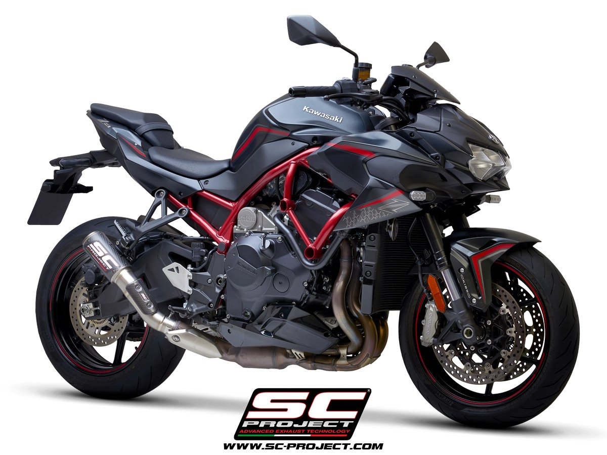 The CR-T muffler is the the unmistakable signature of the Racing style of SC-Project. Multiple Moto2 World Champion was created to satisfy the best Teams and Riders. Designed and developed to give a sporty and racing character to your Kawasaki Z H2 with a deep and dark Sound is unique in the aftermarket silencer panorama. The iconic muffler is available in variants Titanium or Carbon. To achieve the best performance the CR-T is built with materials derived from the aeronautical industry, such as Titanium or Carbon fiber with dedicated treatment to withstand the highest temperatures. Bracket welding and fitting with T.I.G. technology. The insert bushings are all in Titanium machined from solid by CNC machines, wich guarantee impeccable couplings. In the kit is included the carbon heat protection.