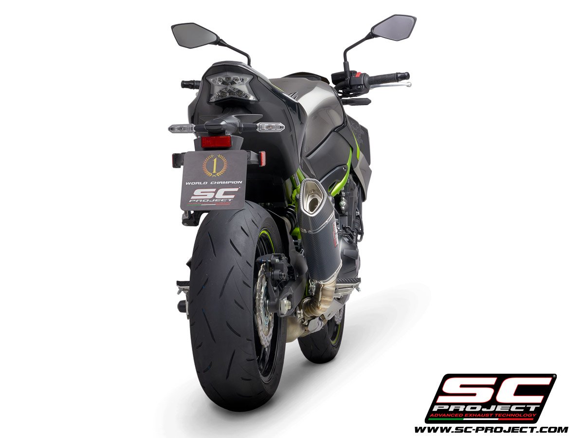 The SC1-R muffler represents the highest technological expression that can be installed on the Kawasaki Z900. Born for the Superbike World Championship, extreme performance and racing look made especially for your Z900. Its titanium outlet is obtained by hydroforming and its carbon endcap is made in autoclave. The muffler is available with an external body in titanium or carbon. The welds of the bracket and the pipe are produced with T.I.G. technology, the soundproofing material is designed to withstand very high temperatures. The sound is unique, made especially for the Kawasaki four-cylinder. The silencer is EURO4 approved. It comes with a large autoclave made carbon protection, which completely takes the place of the original.